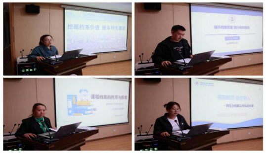 会议期间,由四名部门档案员:财务处张金波、招生办纪莹莹、医学院白英楠、土木与管理学院刘丽娜,进行了档案工作交流与创新成果、个人成长等分享。
